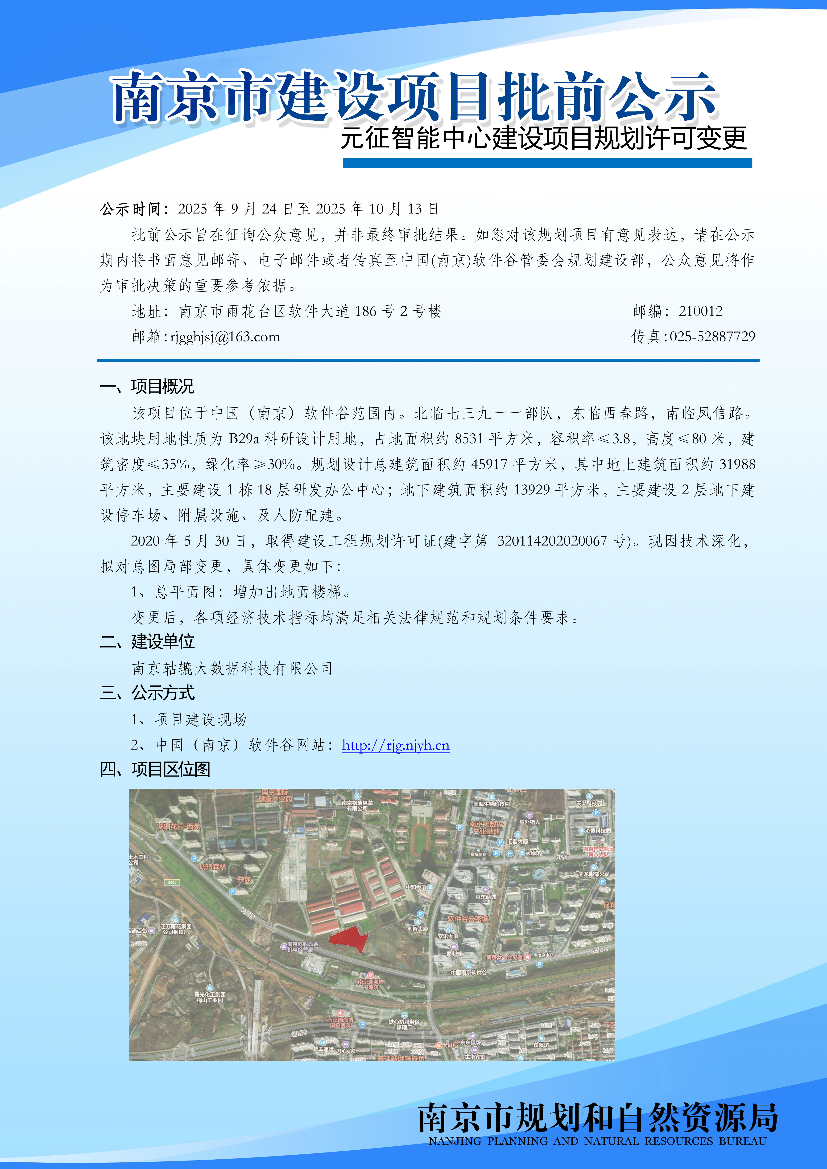 元征智能中心项目规划许可变更批前公示(公示时间:2025.9.24~10.13)