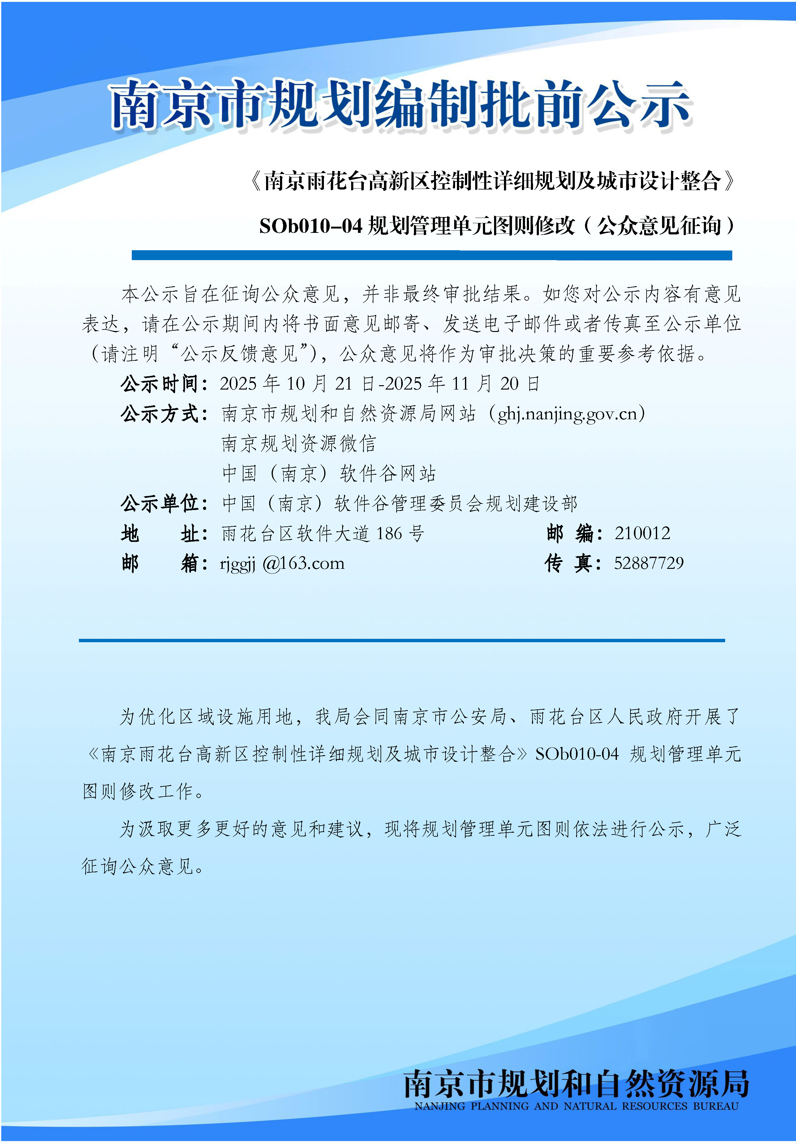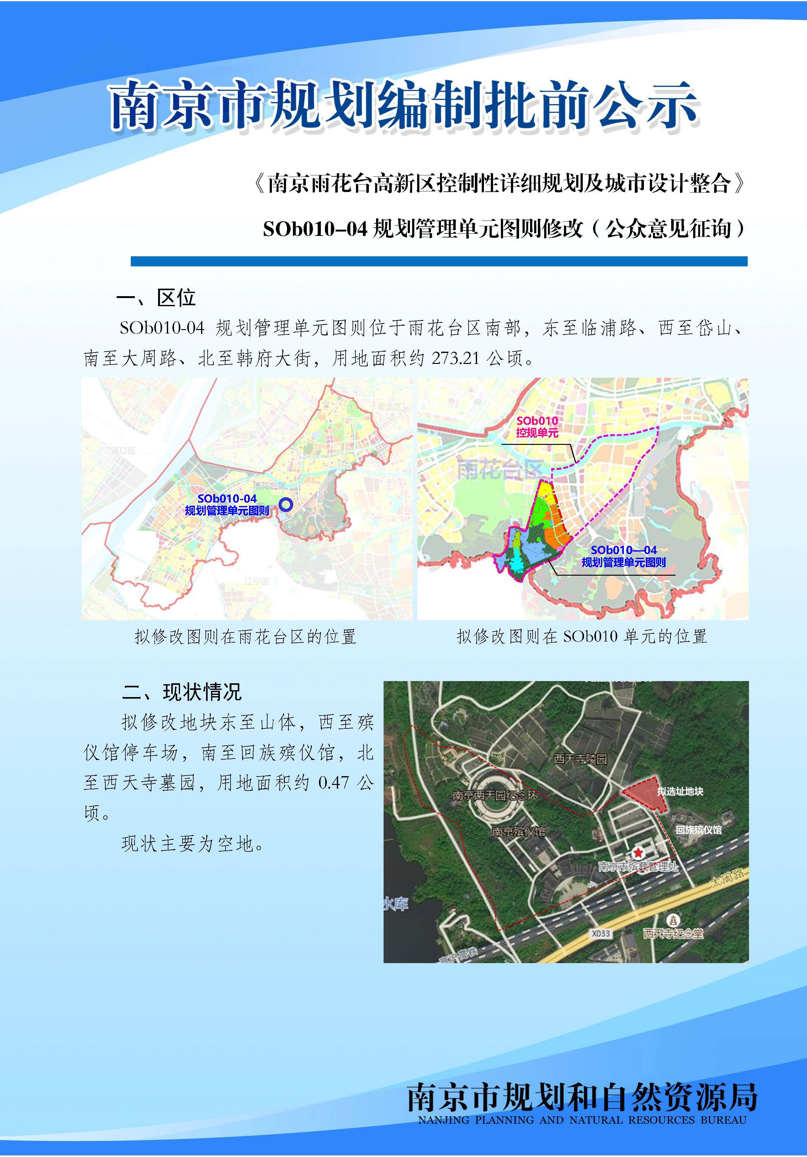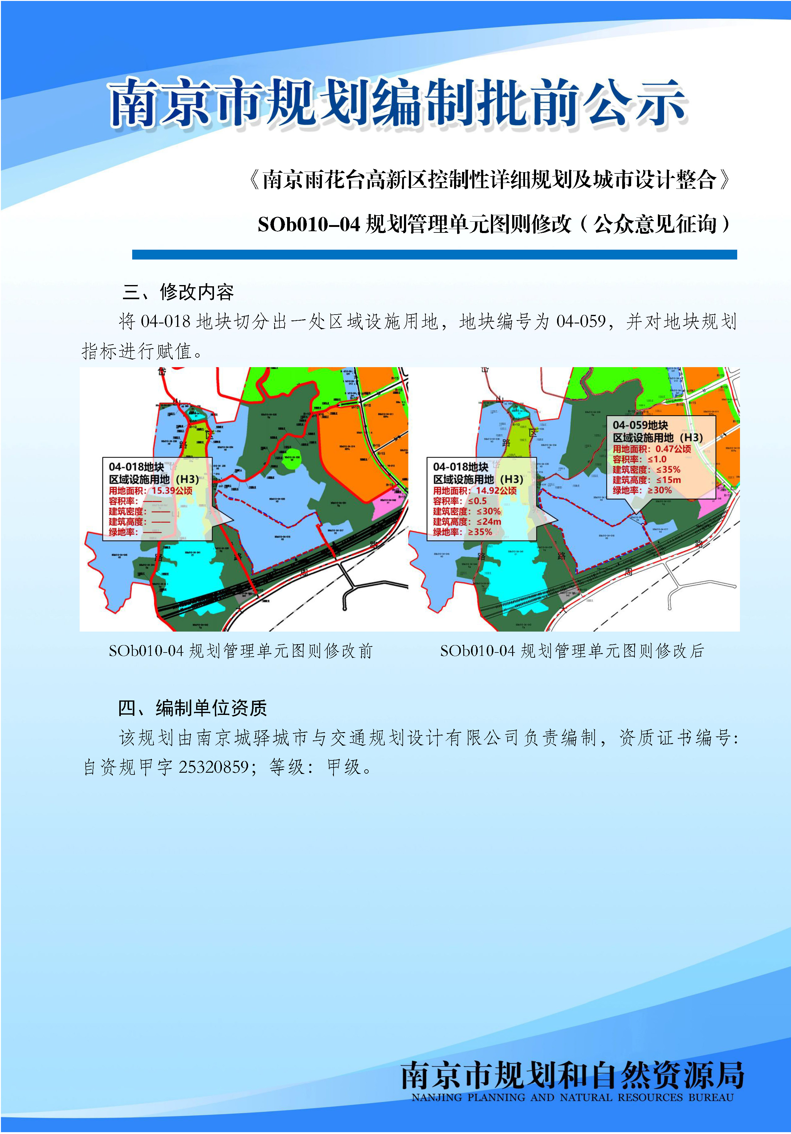 《南京雨花台高新区控制性详细规划及城市设计整合》SOb010-04规划管理单元图则修改(公众意见征询)