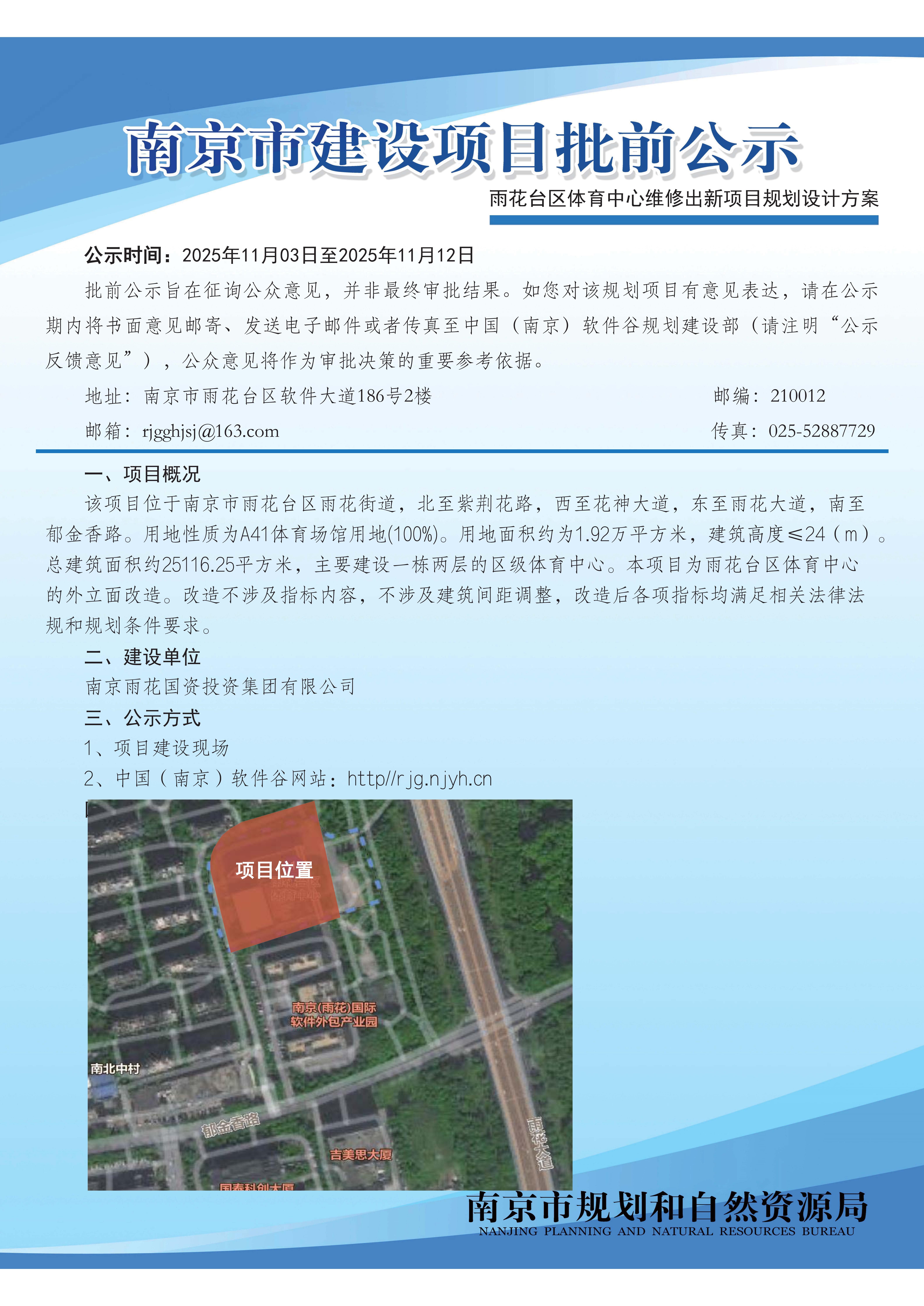 雨花台区体育中心维修出新项目规划设计方案批前公示(公示时间:2025.11.3-2025.11.12)