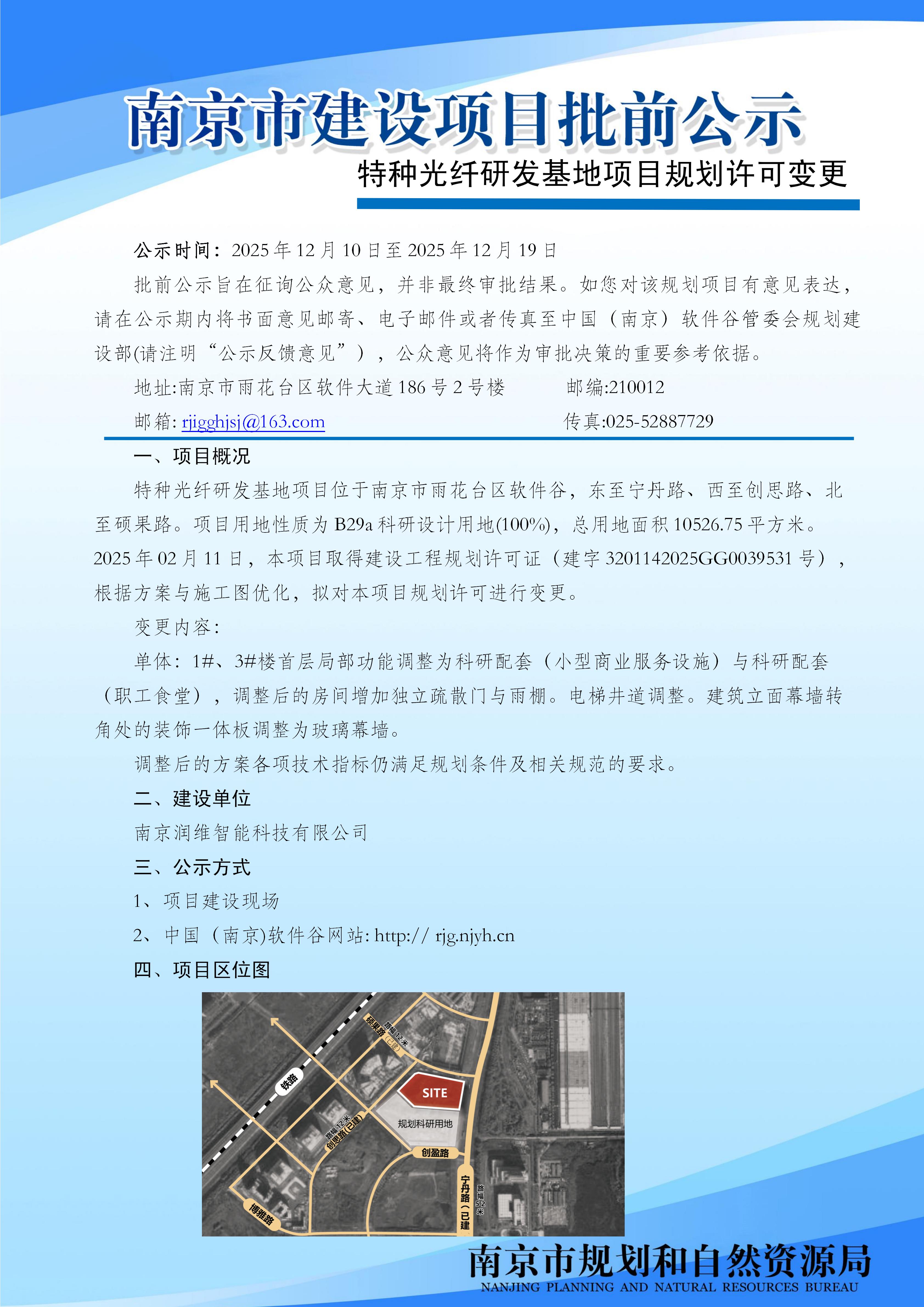 特种光纤研发产业基地项目规划许可变更(公示时间:2025.12.10-2025.12.19)