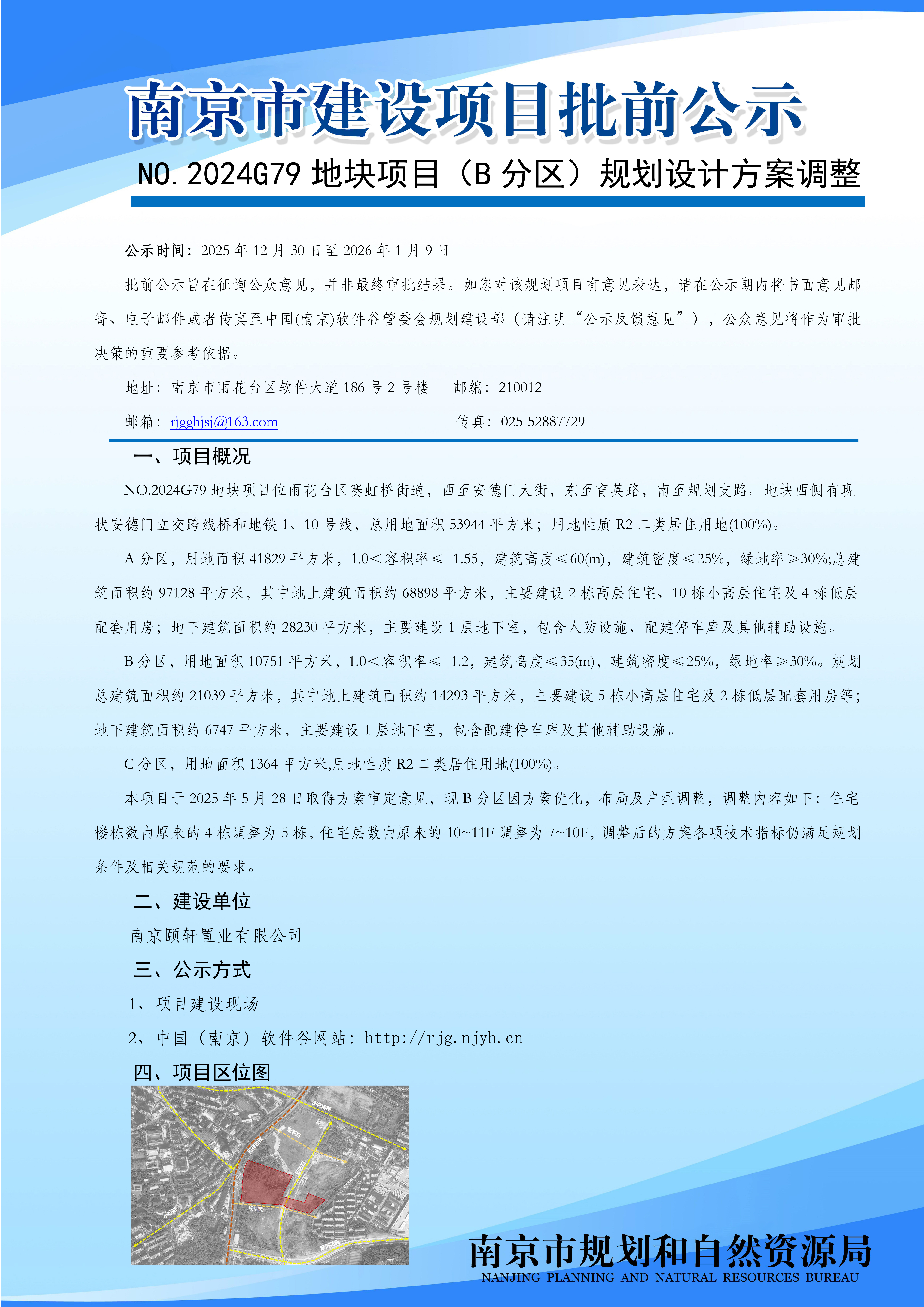 NO.2024G79地块项目(B分区)规划设计方案调整(公示日期:2025.12.30-2026.1.9)