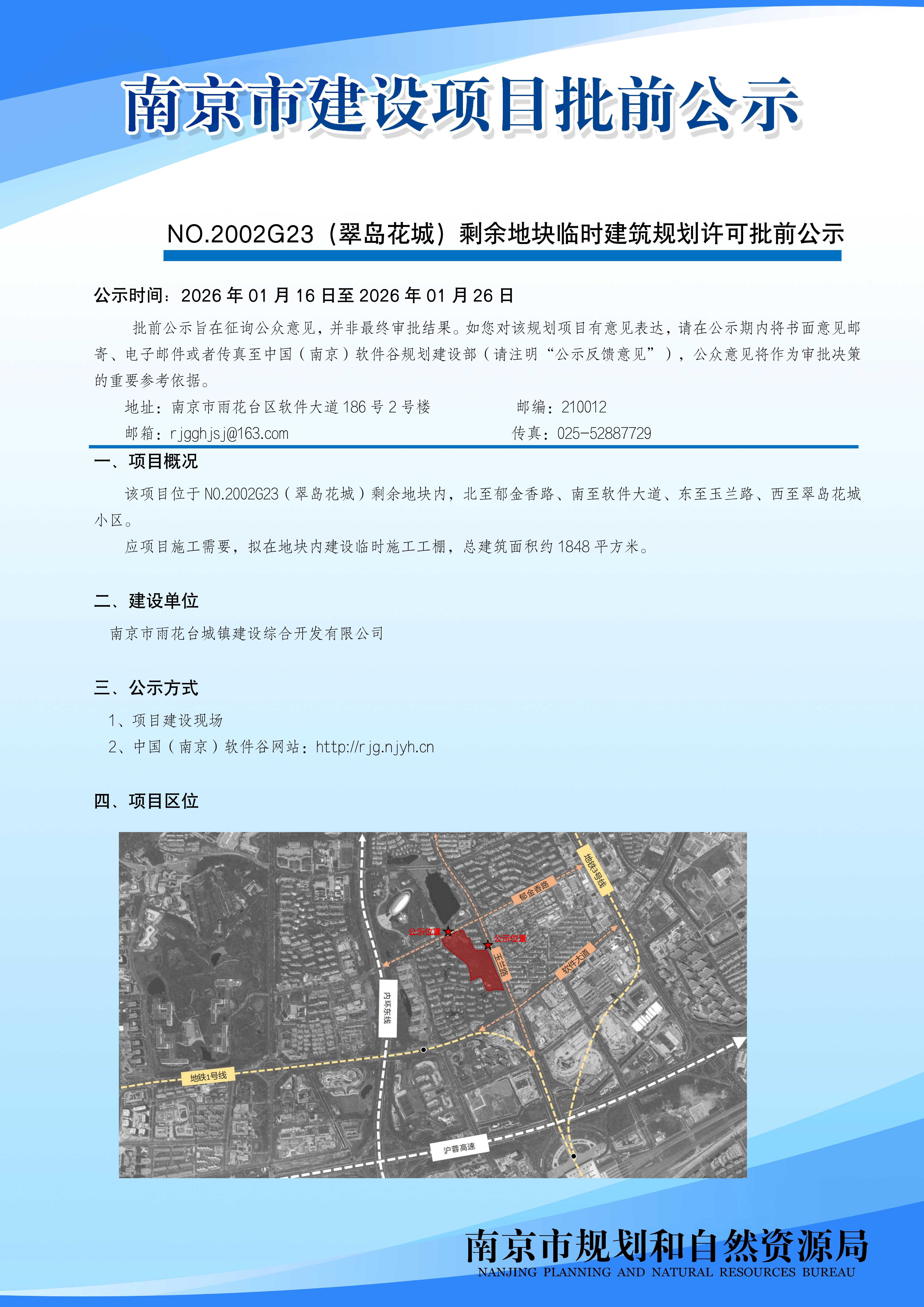 NO.2002G23(翠岛花城)剩余地块临时建筑规划许可批前公示公示时间:2026.1.16-1.26)