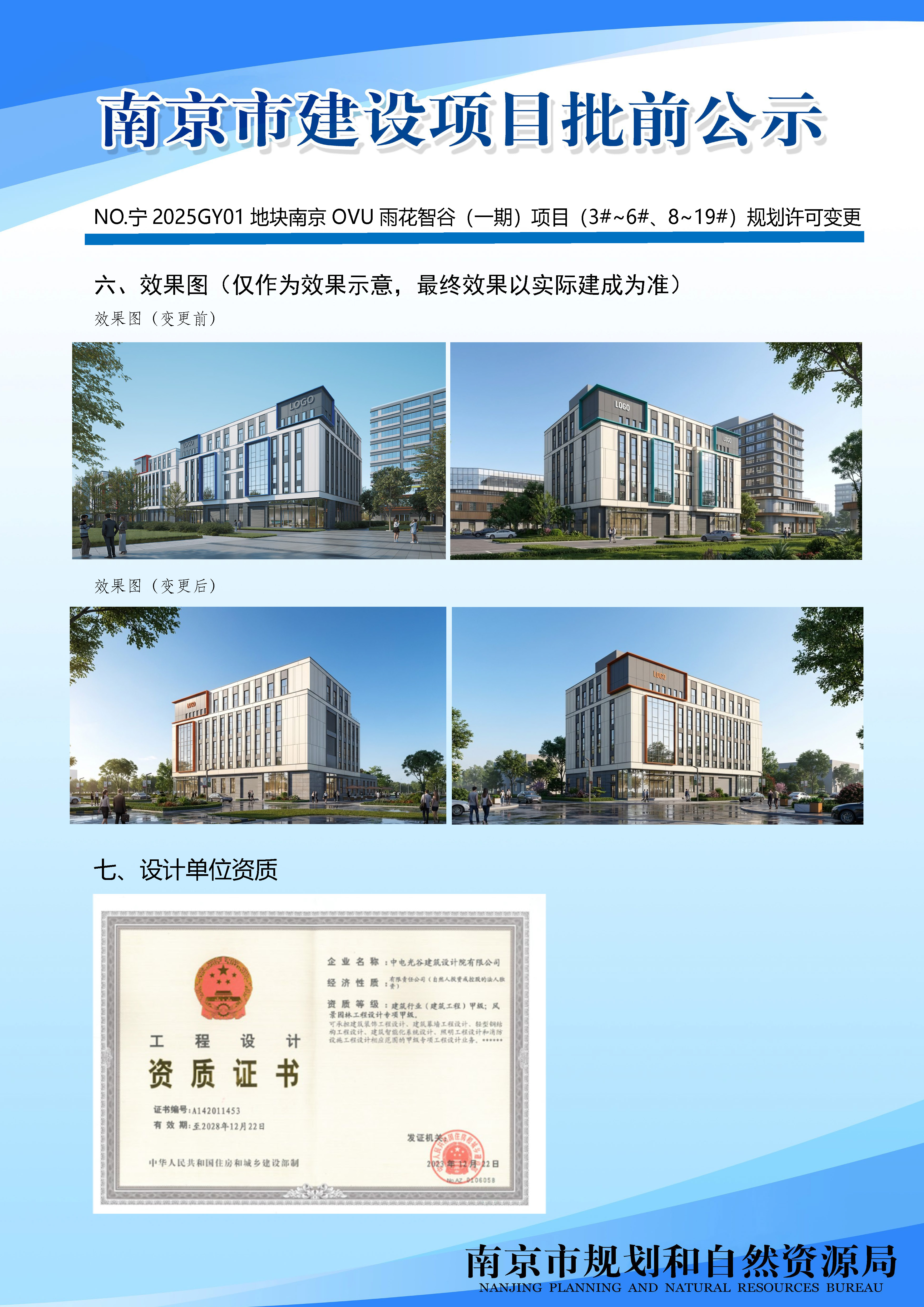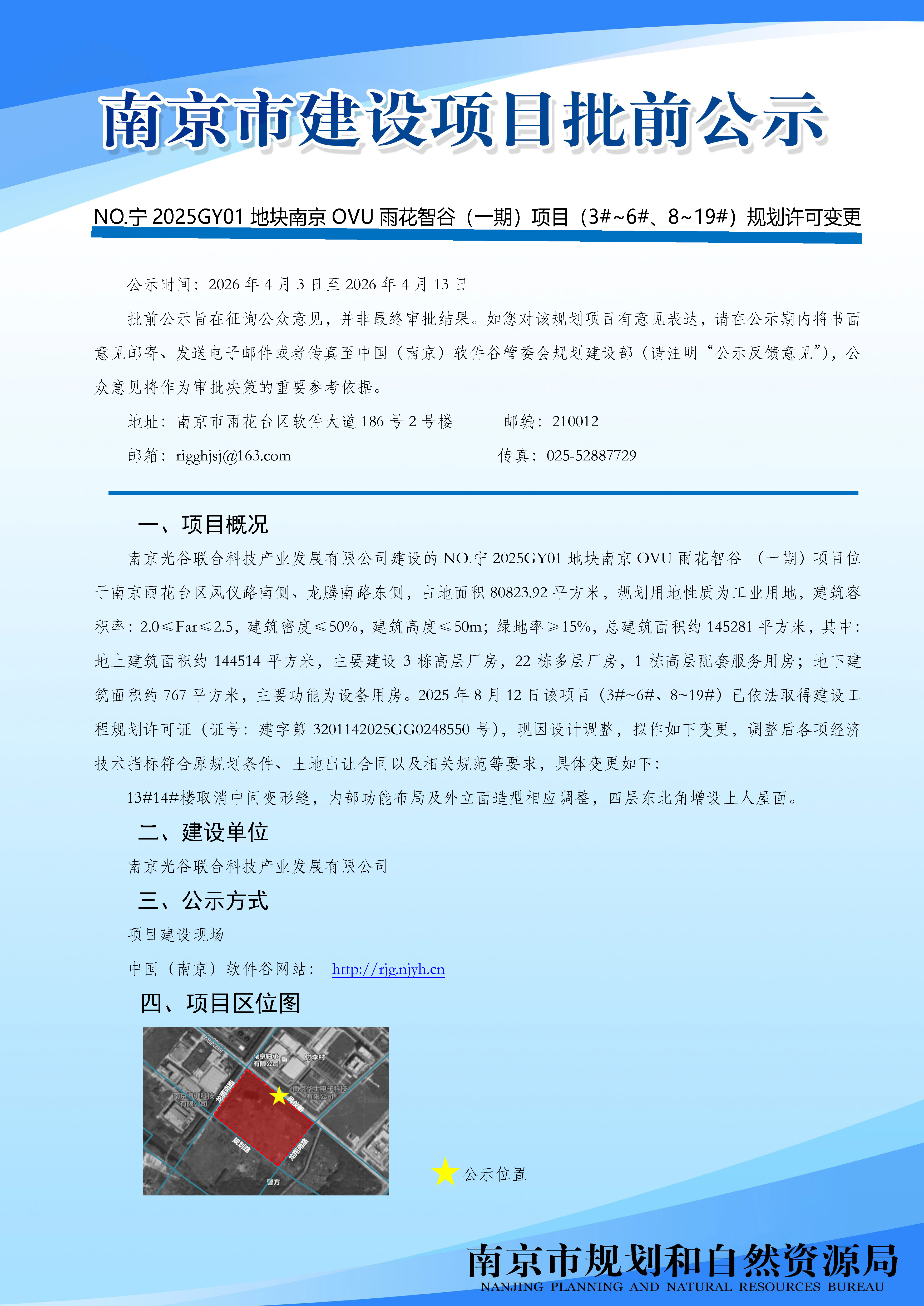NO.宁2025GY01地块南京OVU雨花智谷(一期)项目规划许可变更批前公示(公示时间:2026.4.3-4.13)
