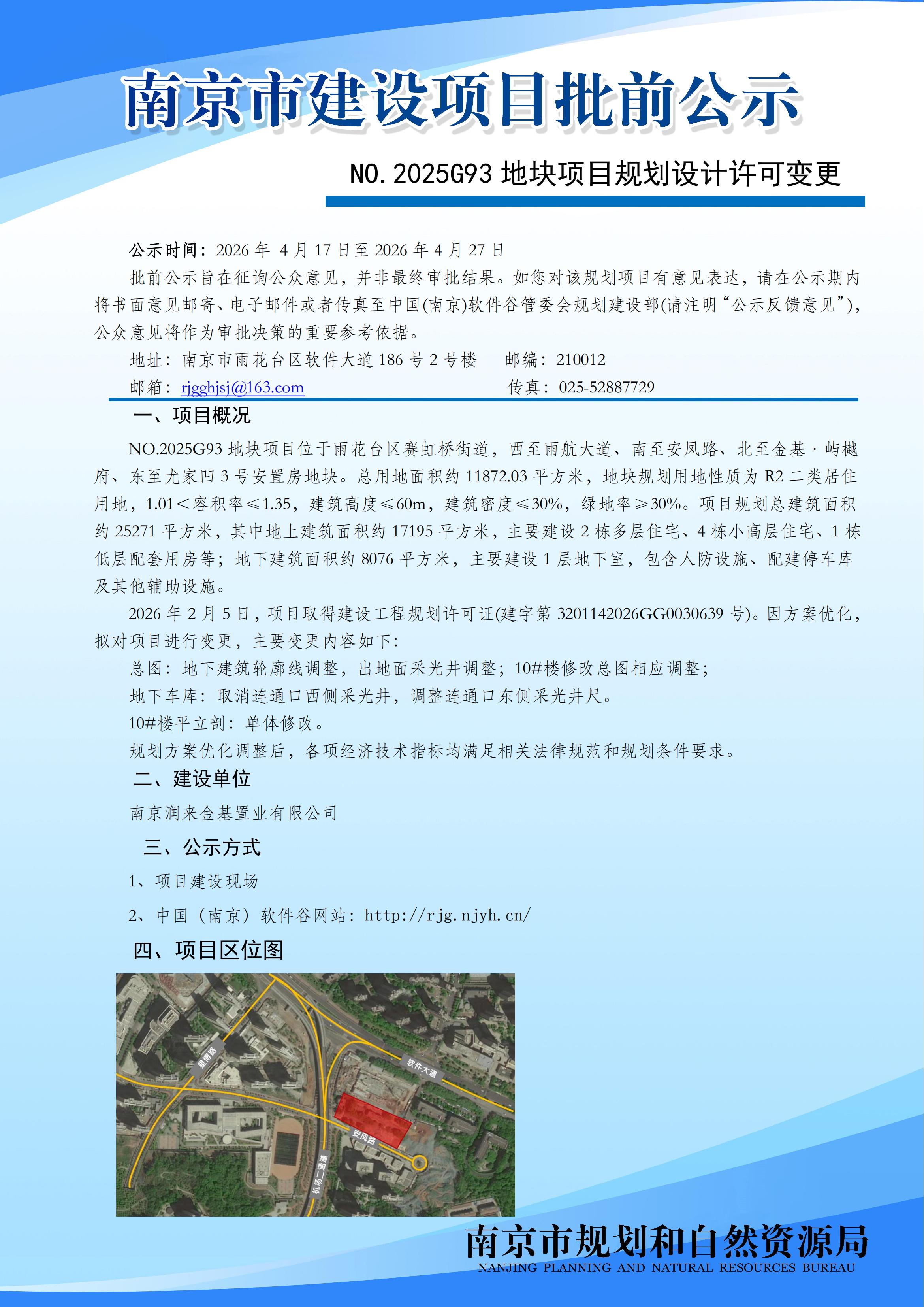 NO.2025G93地块项目规划许可变更(公示时间:2026.4.17-2026.4.27)
